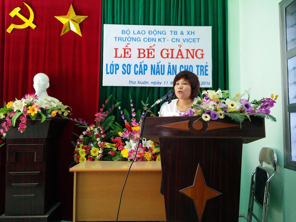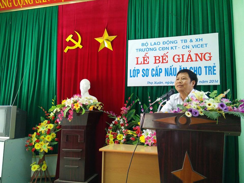 BGH trường Cao đẳng nghề Kinh tế - Công nghệ VICET, sáng ngày 11 tháng 10 năm 2014 tại Trung tâm dạy nghề huyện Tho Xuân